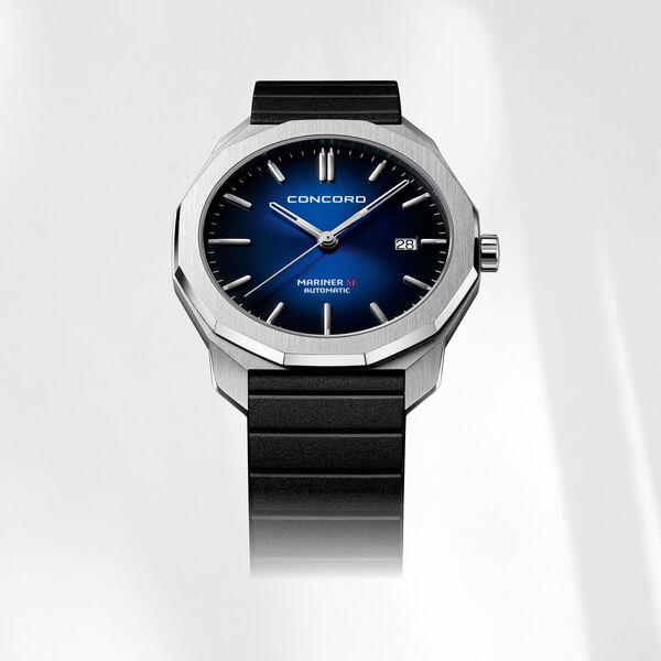 | تفاصيل اضافية | Men's Mariner SL Automatic Watch, 40mm stainless steel case, 7.85 mm thick, brushed and polished finishing, sapphire crystal with antireflective underneath, 5 bars water-resistance; blue galvanic dial with rhodium plated indexes and date window; diamond-p |