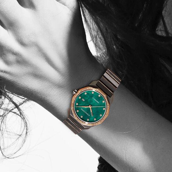 | مادة الاطار | "Stainless steel/18K RG, set bezel, green MOP 12D dial" |